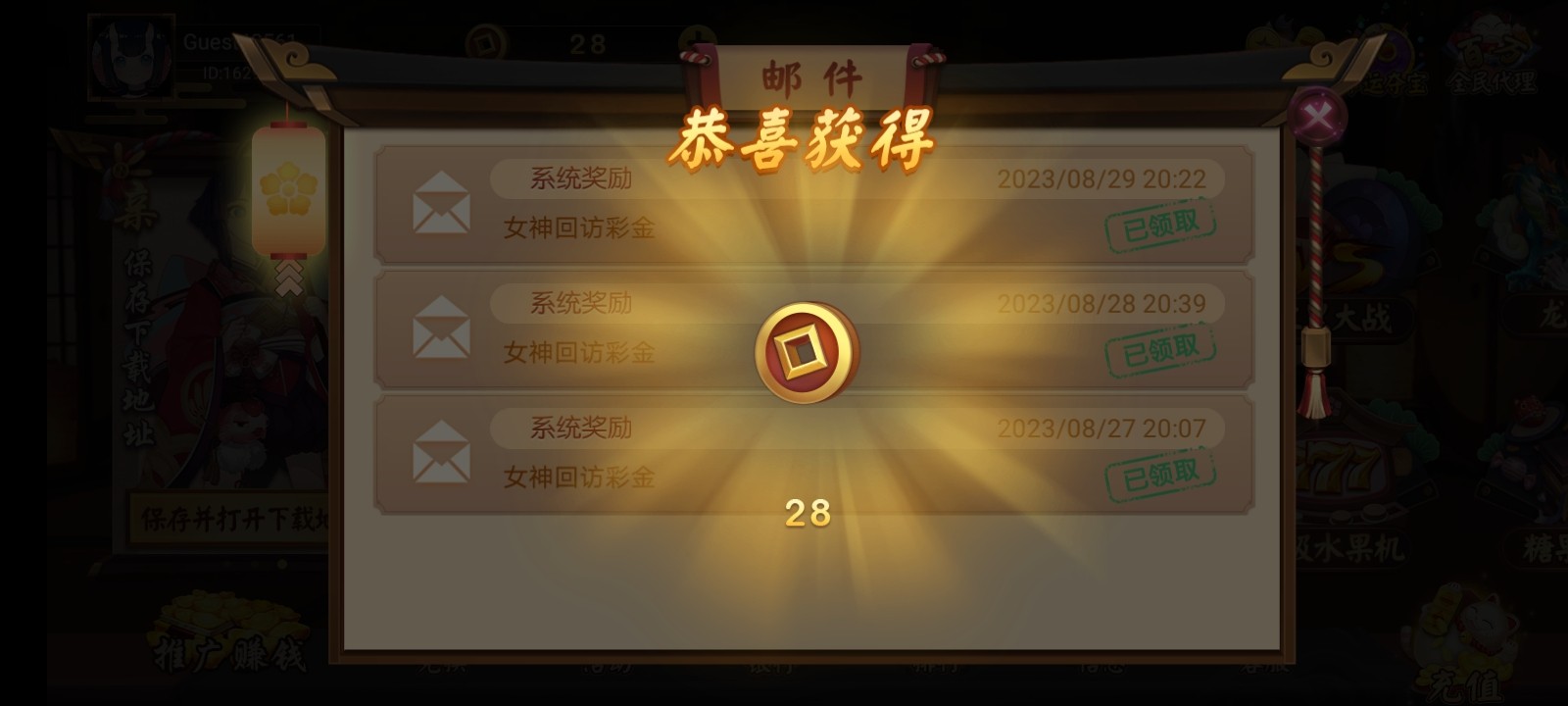 送了28我也是昨天注册今天就打来了