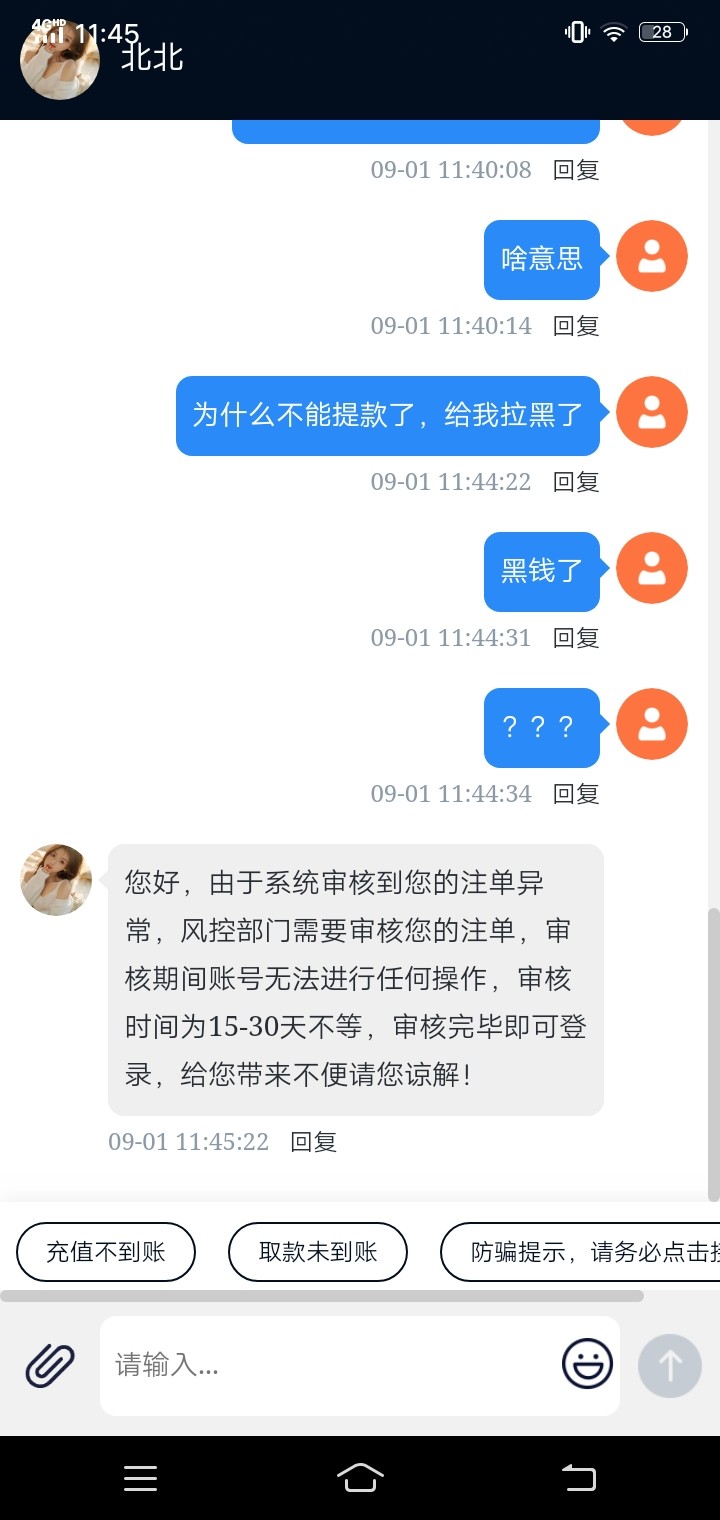 去年黑过我一次充值说超时,后来忘记了,现在开始黑钱了