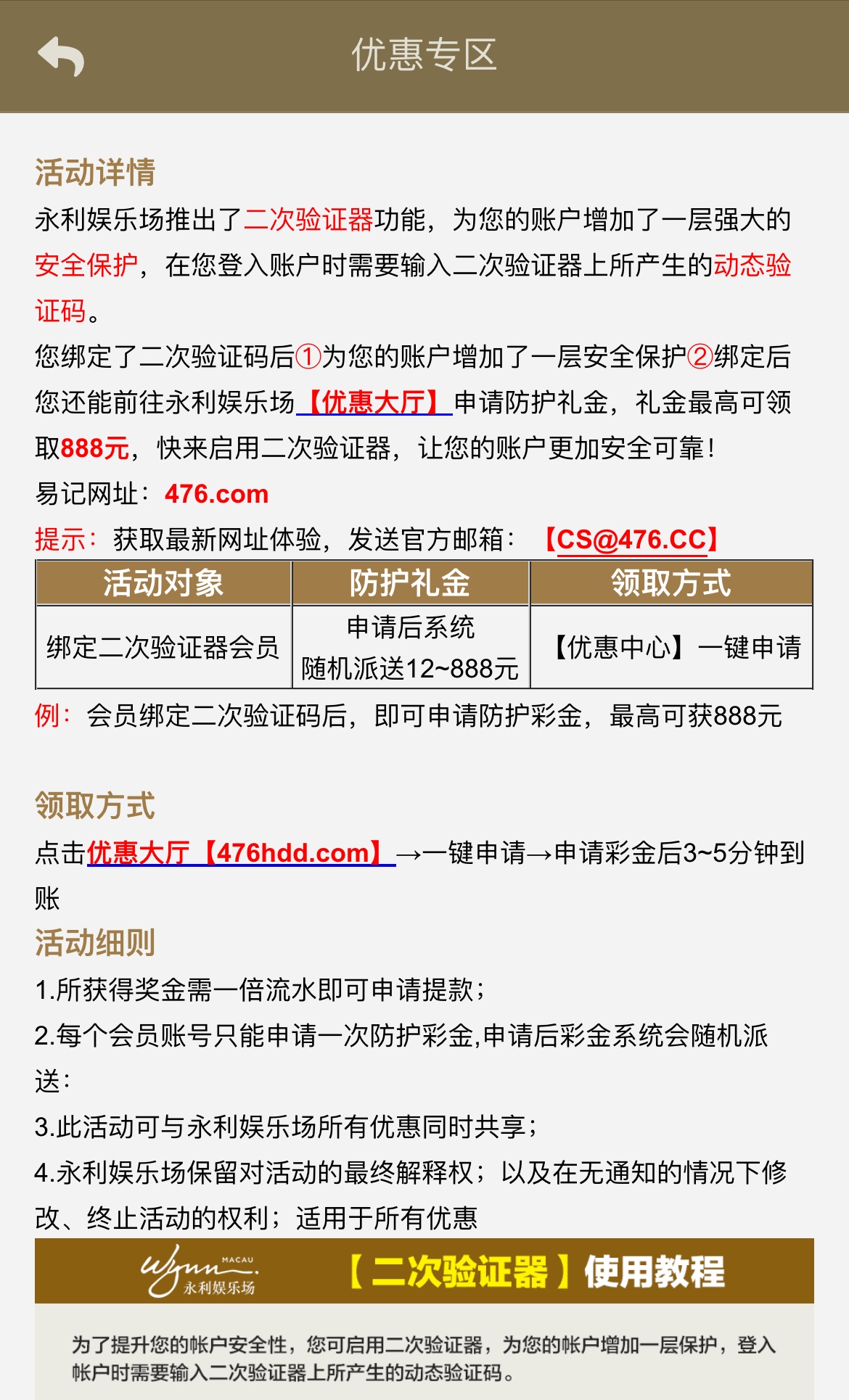 绑定二次验证器送12彩金,自助优惠里领取,优惠大厅476hdd.com