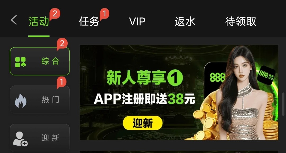 之前就有发过属于老白菜了,下载APP注册绑定银行卡/支付宝得18彩金或绑电子钱包得38彩金,二选一,10倍流水,仅限娱乐电子/棋牌/捕鱼