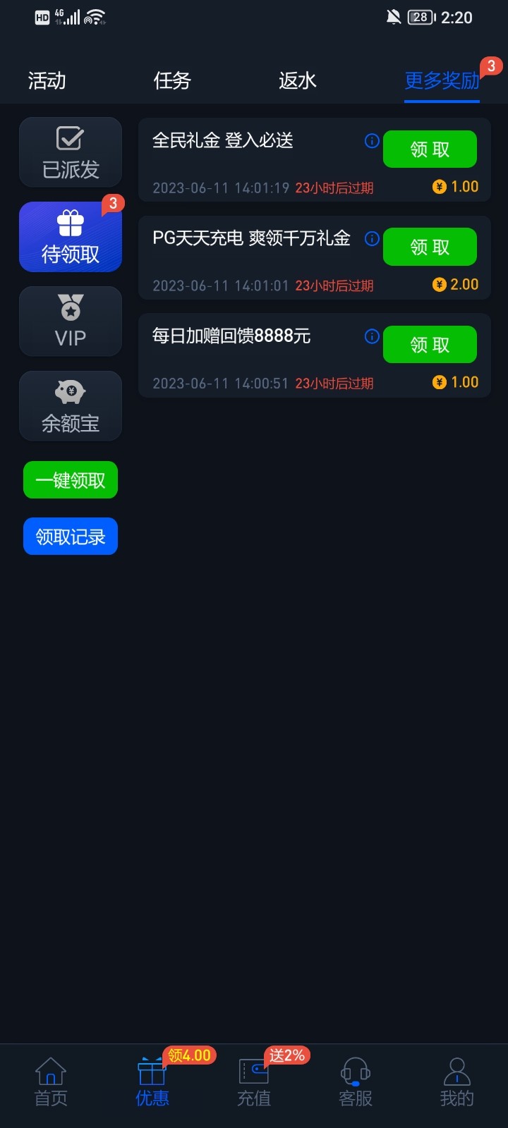 还好看见了,之前玩过领了25反水。